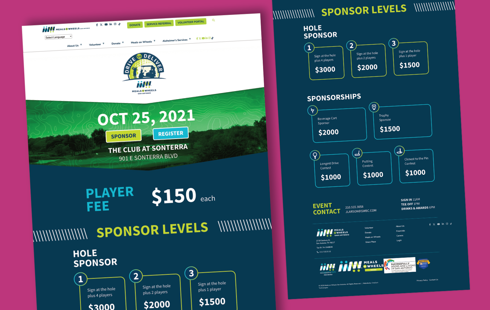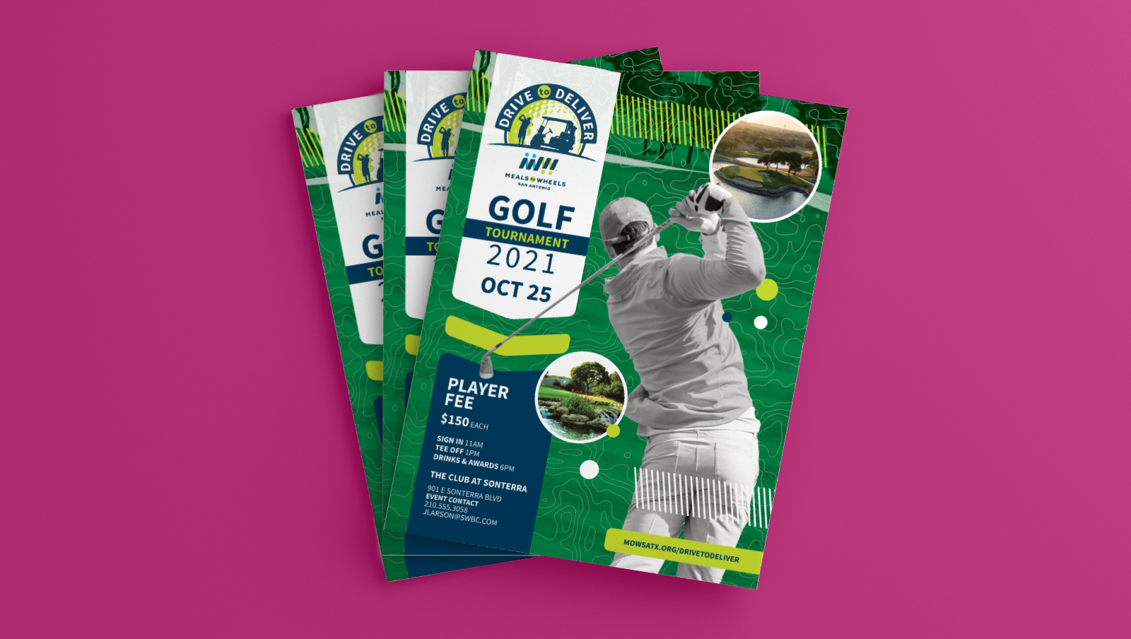 I was approached by Red Media Strategies to design a promotional flyer for the San Antonio program’s golf tournament, Drive to Deliver. The goal was to create a dynamic piece that conveyed motion and energy by featuring a golfer mid-drive while staying aligned with the organizations brand colors and visual identity.